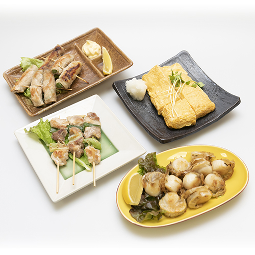 注文が入ってから、一品一品ていねいに焼き上げる、わらじ家の「焼きもの」。ビールによく合います。